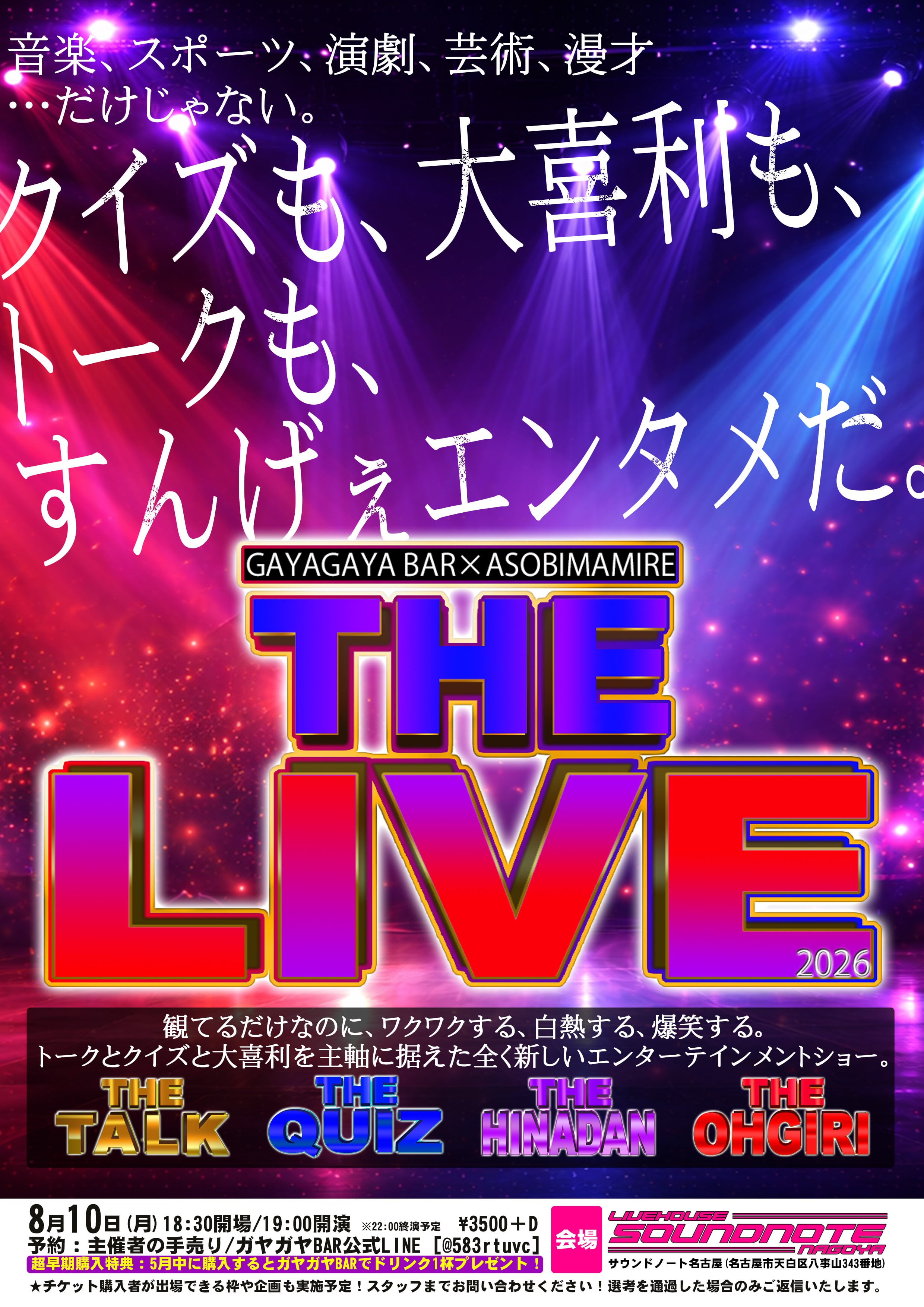 8月10日(月)ライブハウス・サウンドノート名古屋で開催予定の「THE LIVE」を応援するためのスポンサー権です。